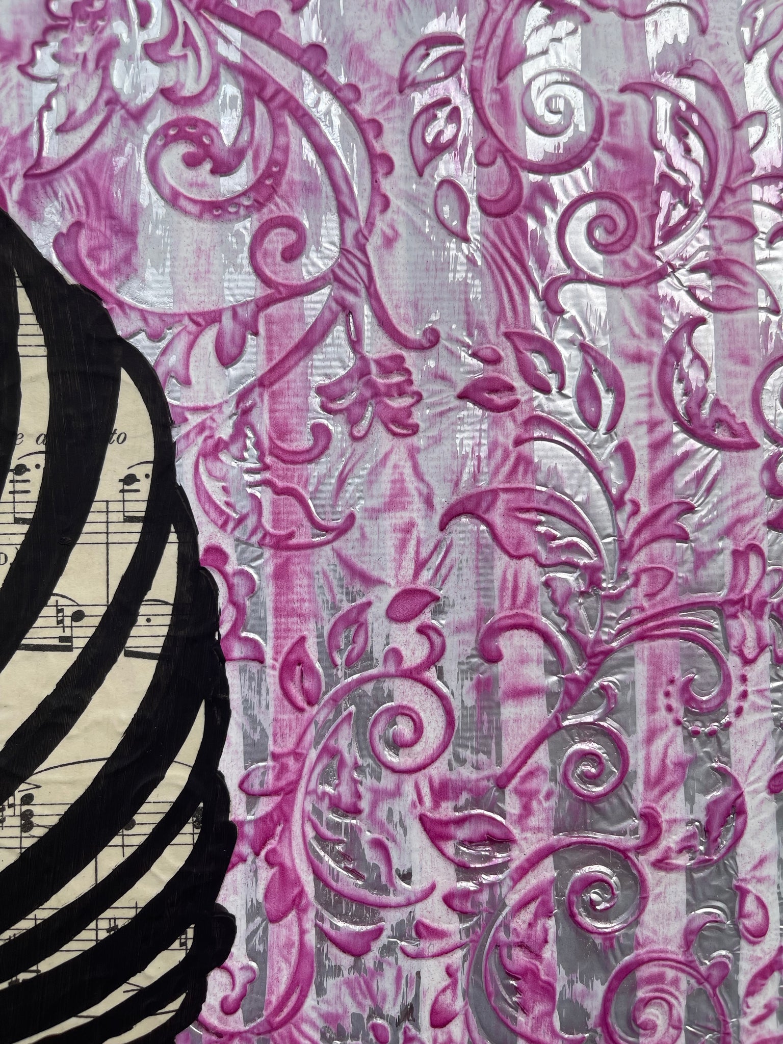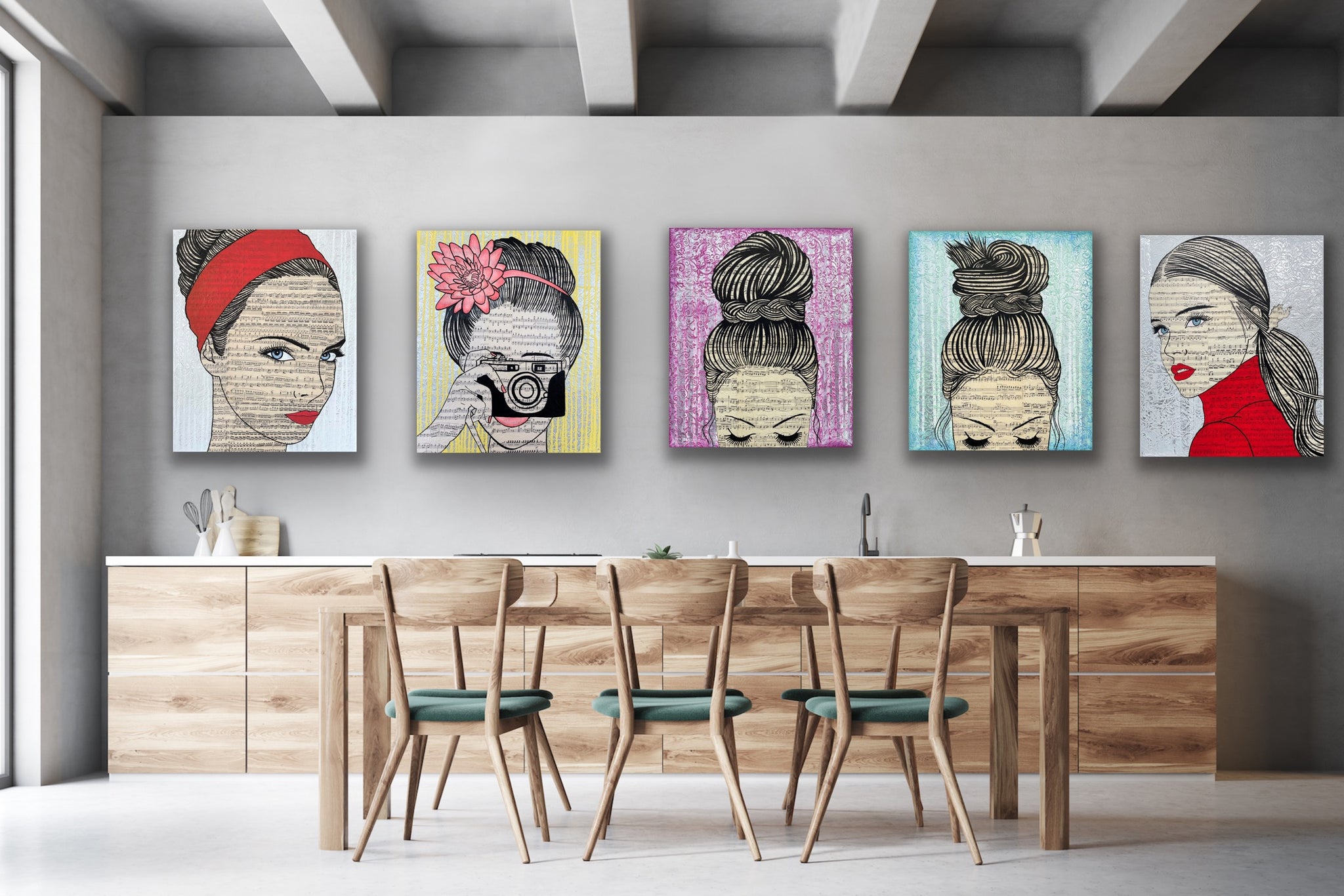 Martina's works are acrylic paintings on a highly textured very unique patterned background using vintage sheet music, a medium she prefers due to the aged character of old paper from all over the world. Her major themes are life, emotions, feelings, relationships, moments and events that impact her inspiration. Her paintings are collected throughout the World, and can be found in many public, corporate and private collections. She is represented by 4 galleries (USA, UK, Holland and Switzerland) and showed her work at Affordable Art Fairs in Amsterdam, Brussels, London Battersea and London Hampstead.