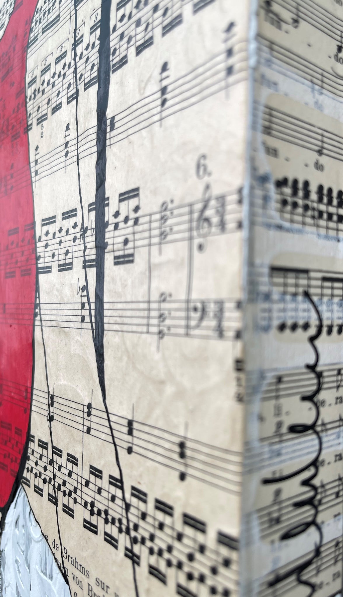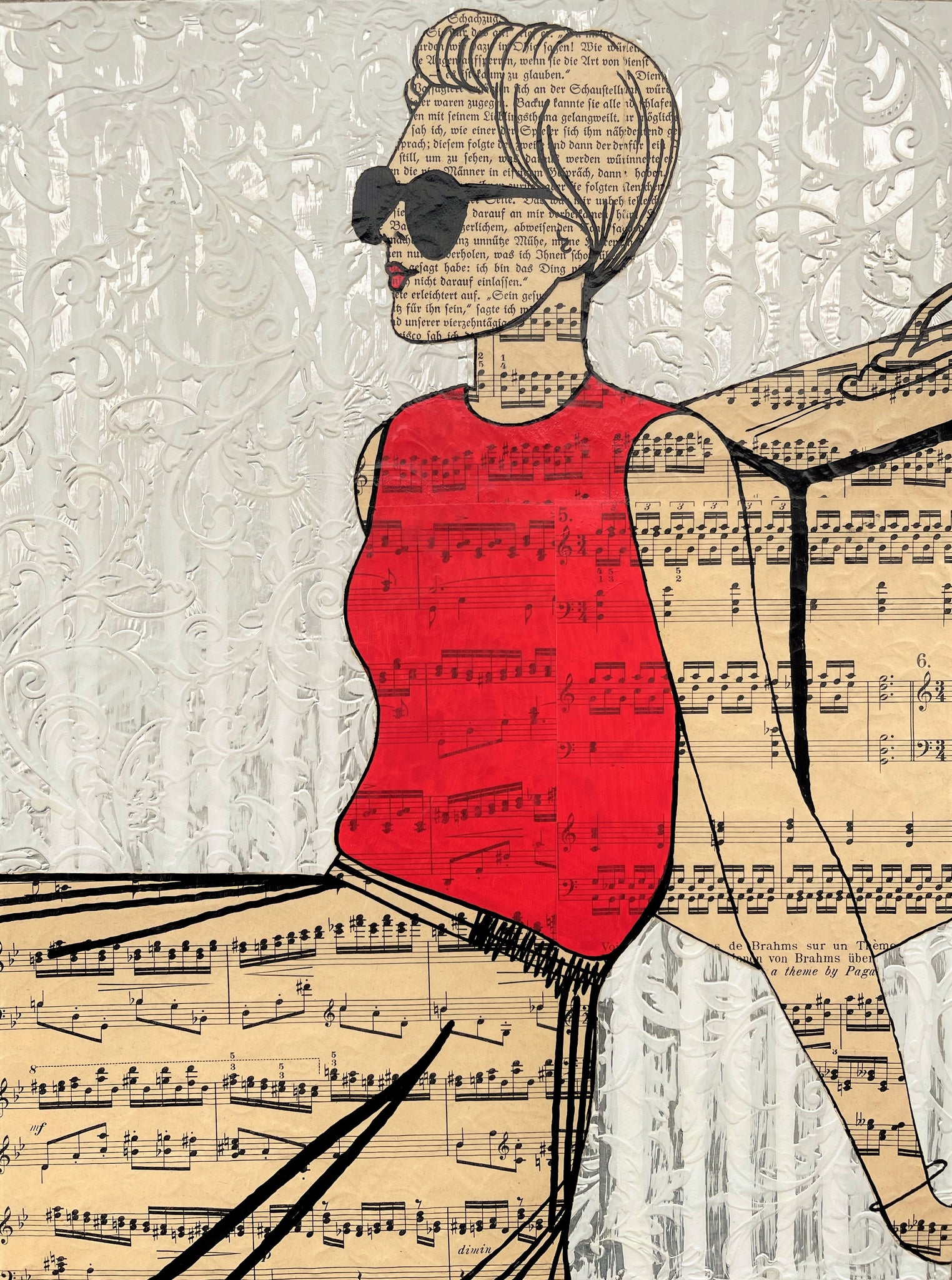 Martina's works are acrylic paintings on a highly textured very unique patterned background using vintage sheet music, a medium she prefers due to the aged character of old paper from all over the world. Her major themes are life, emotions, feelings, relationships, moments and events that impact her inspiration. Her paintings are collected throughout the World, and can be found in many public, corporate and private collections. She is represented by 4 galleries (USA, UK, Holland and Switzerland) and showed her work at Affordable Art Fairs in Amsterdam, Brussels, London Battersea and London Hampstead.