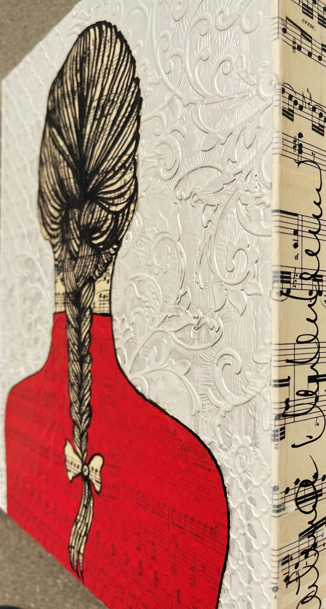 Martina's works are acrylic paintings on a highly textured very unique patterned background using vintage sheet music, a medium she prefers due to the aged character of old paper from all over the world. Her major themes are life, emotions, feelings, relationships, moments and events that impact her inspiration. Her paintings are collected throughout the World, and can be found in many public, corporate and private collections. She is represented by 4 galleries (USA, UK, Holland and Switzerland) and showed her work at Affordable Art Fairs in Amsterdam, Brussels, London Battersea and London Hampstead.