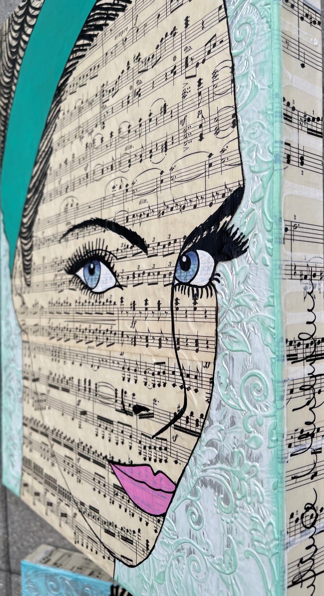 Martina's works are acrylic paintings on a highly textured very unique patterned background using vintage sheet music, a medium she prefers due to the aged character of old paper from all over the world. Her major themes are life, emotions, feelings, relationships, moments and events that impact her inspiration. Her paintings are collected throughout the World, and can be found in many public, corporate and private collections. She is represented by 4 galleries (USA, UK, Holland and Switzerland) and showed her work at Affordable Art Fairs in Amsterdam, Brussels, London Battersea and London Hampstead.