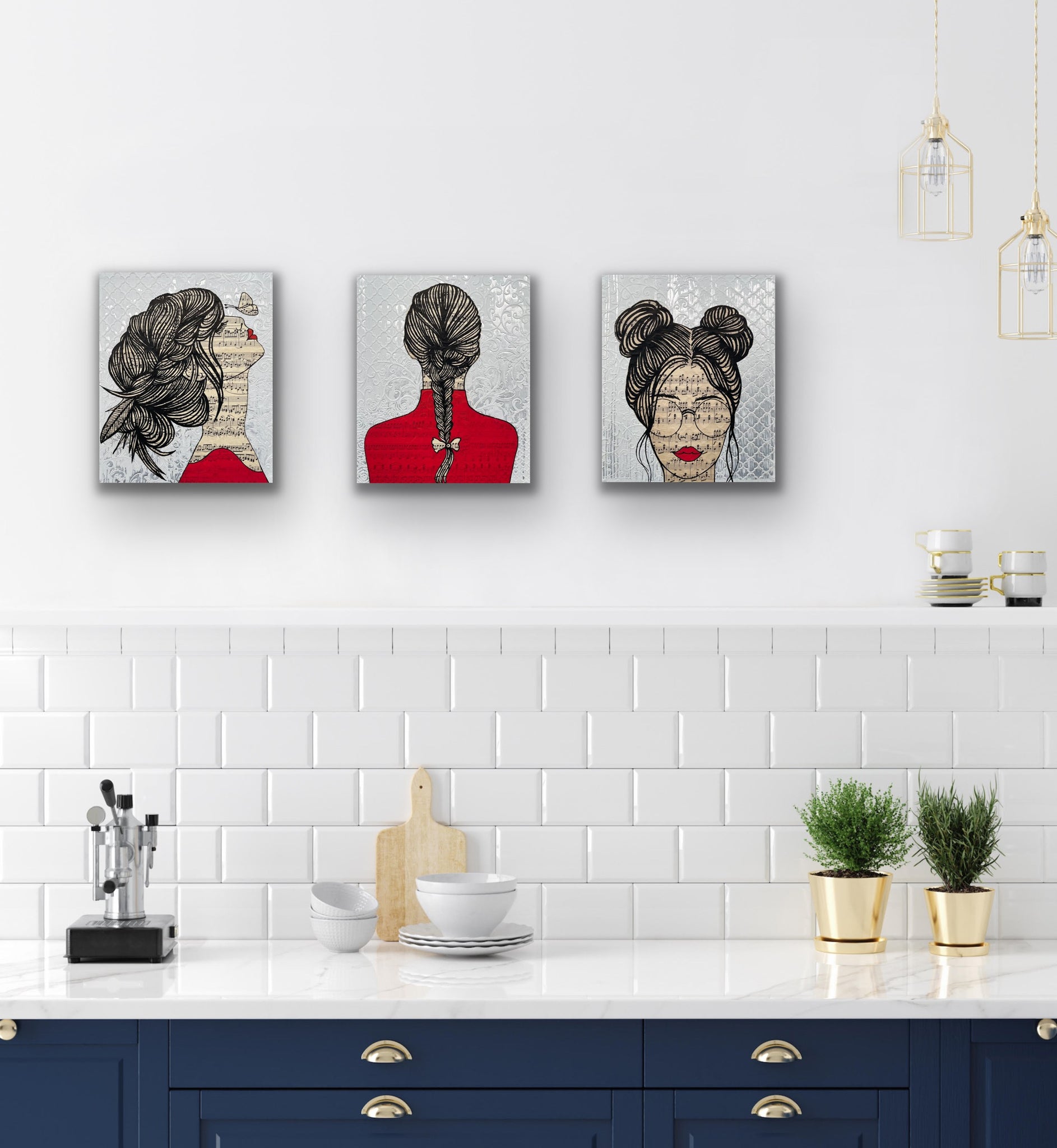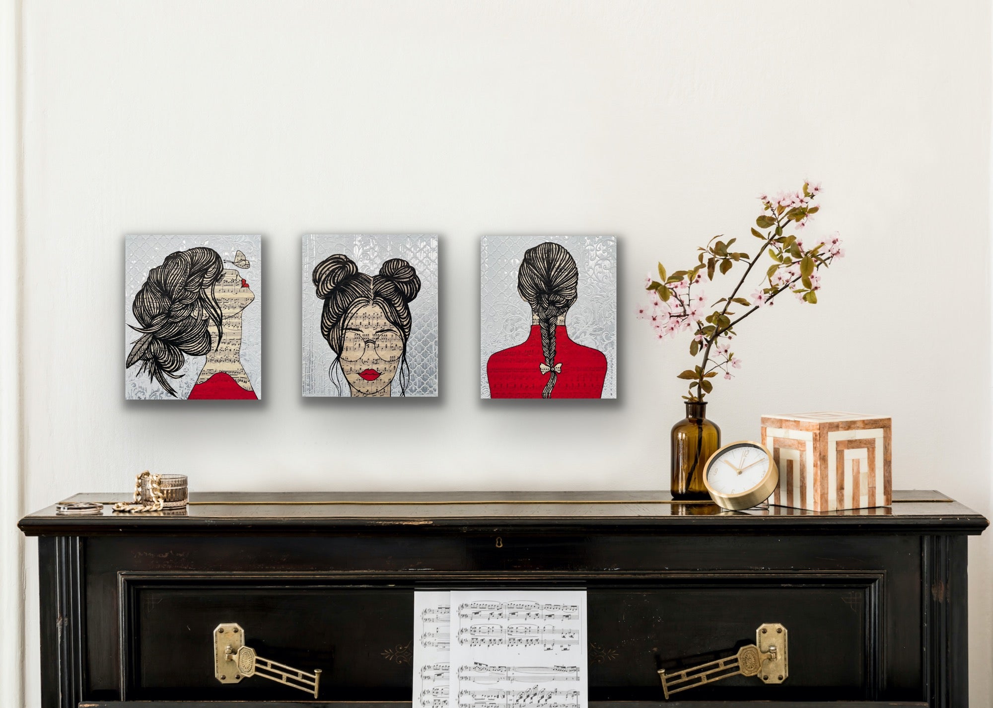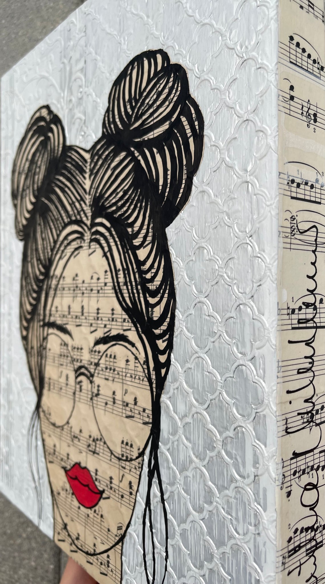 Martina's works are acrylic paintings on a highly textured very unique patterned background using vintage sheet music, a medium she prefers due to the aged character of old paper from all over the world. Her major themes are life, emotions, feelings, relationships, moments and events that impact her inspiration. Her paintings are collected throughout the World, and can be found in many public, corporate and private collections. She is represented by 4 galleries (USA, UK, Holland and Switzerland) and showed her work at Affordable Art Fairs in Amsterdam, Brussels, London Battersea and London Hampstead.