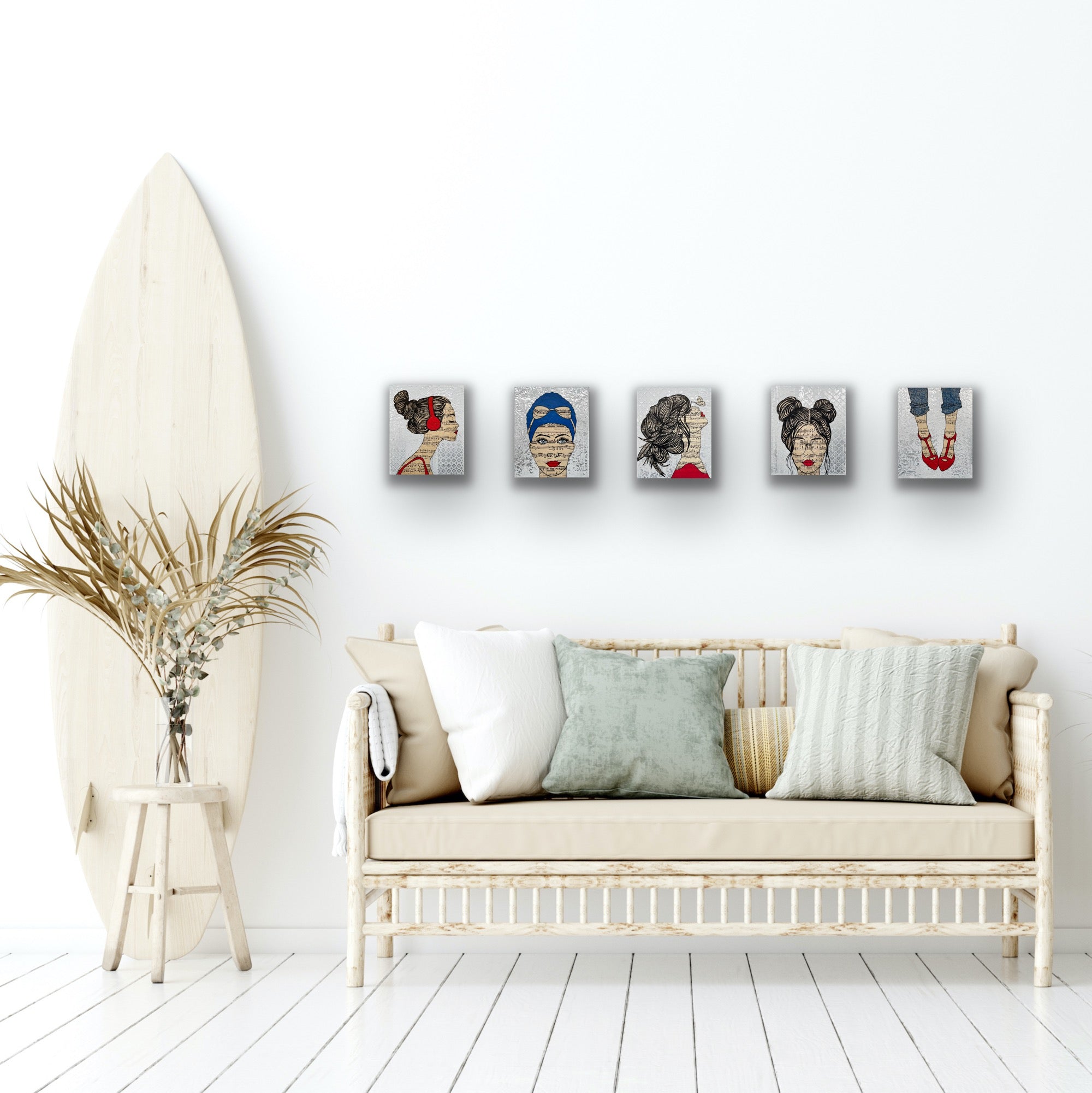 "SUNNIES" is a mixed media painting (acrylic, oil, gouache, pastel and paper on canvas). Edges are a collage of vintage paper for a unique interior style on your wall, so framing is not necessary. It is UV-varnished for protection and ready to hang.