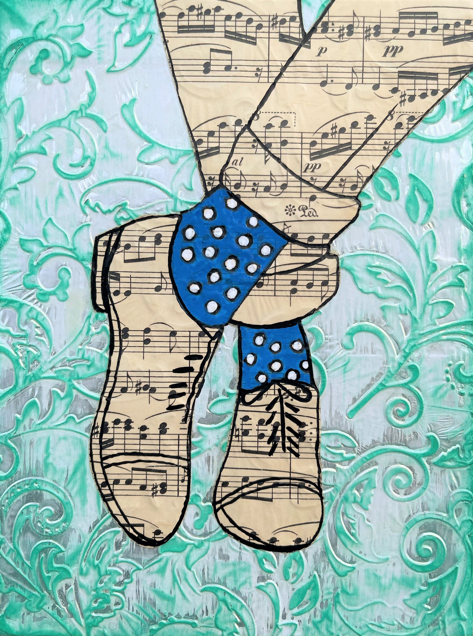 "LEAVING FOOTPRINTS" is a mixed media painting (acrylic, oil, gouache, pastel and paper on canvas). Edges are a collage of vintage paper for a unique interior style on your wall, so framing is not necessary. It is UV-varnished for protection and ready to hang.