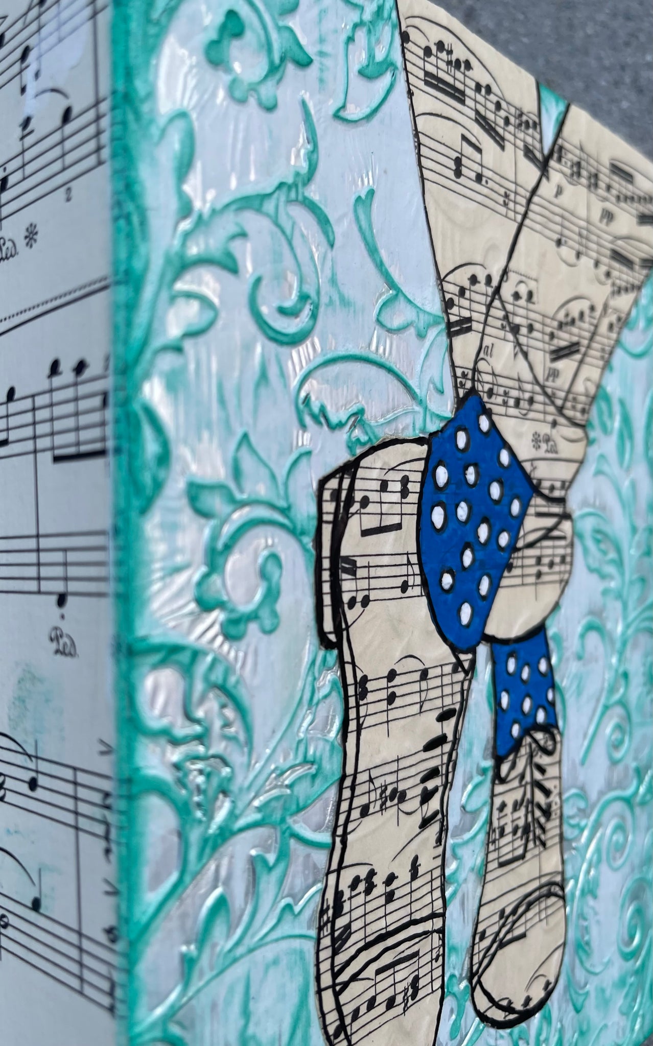 Martina's works are acrylic paintings on a highly textured very unique patterned background using vintage sheet music, a medium she prefers due to the aged character of old paper from all over the world. Her major themes are life, emotions, feelings, relationships, moments and events that impact her inspiration. Her paintings are collected throughout the World, and can be found in many public, corporate and private collections. She is represented by 4 galleries (USA, UK, Holland and Switzerland) and showed her work at Affordable Art Fairs in Amsterdam, Brussels, London Battersea and London Hampstead.