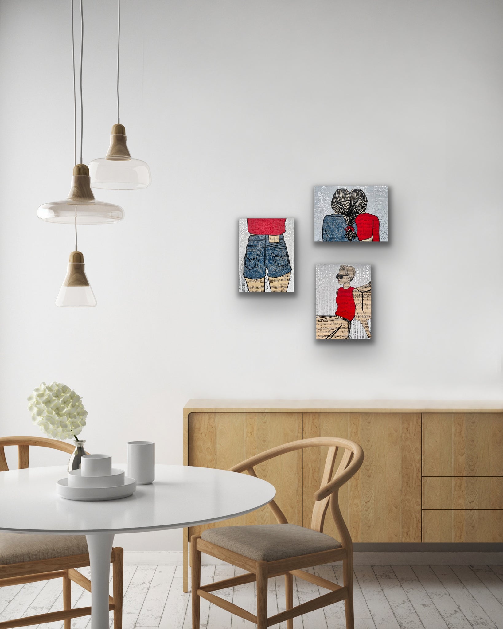 Martina's works are acrylic paintings on a highly textured very unique patterned background using vintage sheet music, a medium she prefers due to the aged character of old paper from all over the world. Her major themes are life, emotions, feelings, relationships, moments and events that impact her inspiration. Her paintings are collected throughout the World, and can be found in many public, corporate and private collections. She is represented by 4 galleries (USA, UK, Holland and Switzerland) and showed her work at Affordable Art Fairs in Amsterdam, Brussels, London Battersea and London Hampstead.