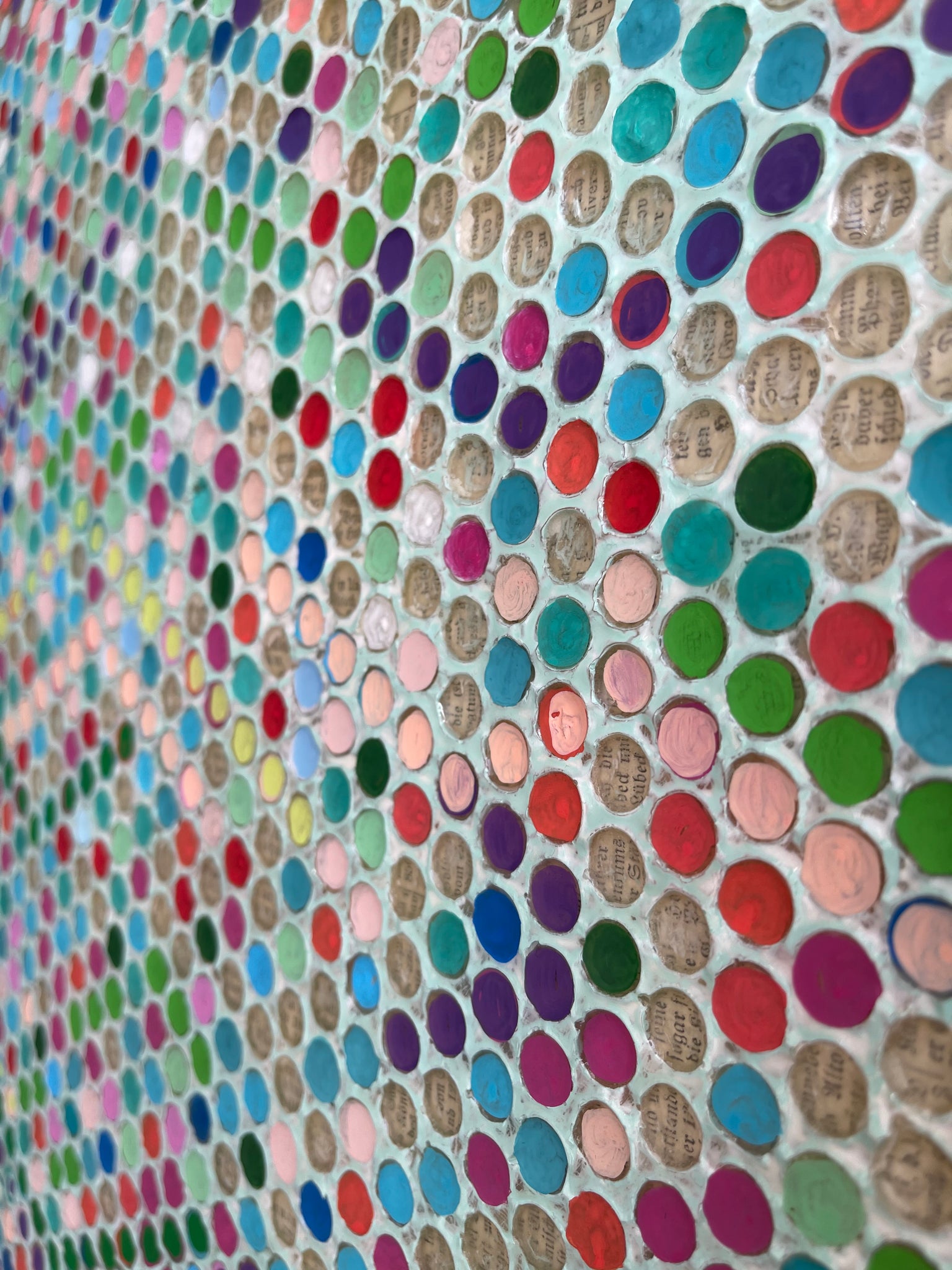 I was very fascinated during packing of artworks to send overseas and discovered the bubble wrap paper with bubble and started to paint on those. It ended up with my new successful collection.