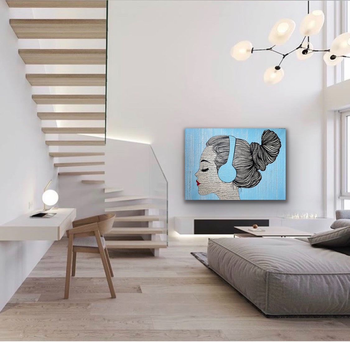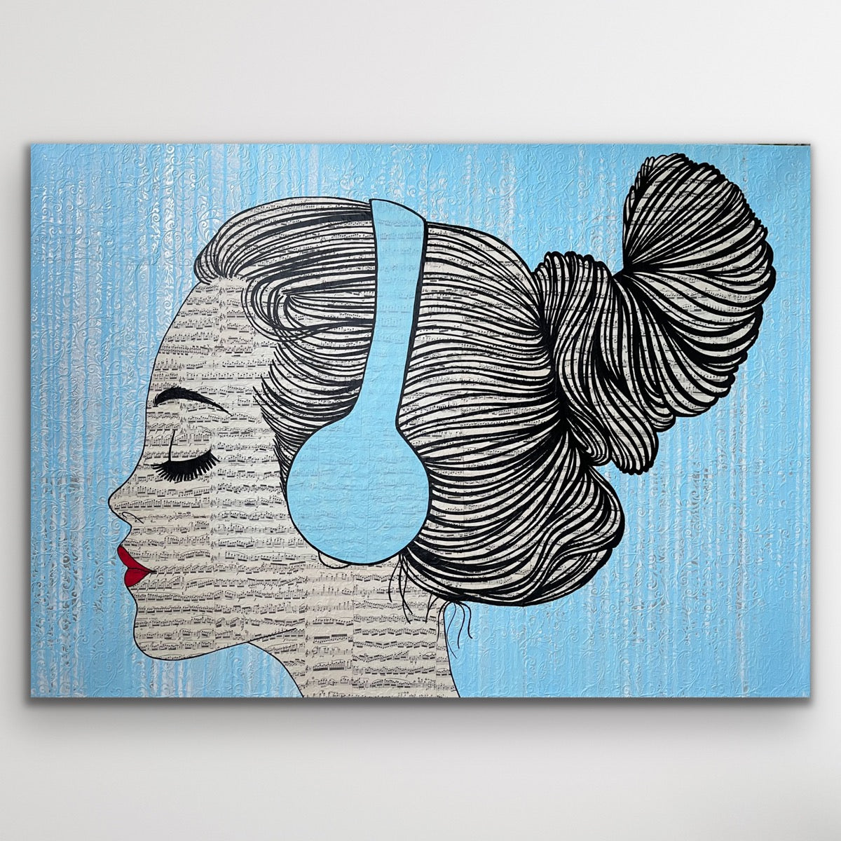 "A SONG FOR YOU" is a mixed media painting (acrylic, oil, gouache, pastel and paper on canvas). Edges are a collage of vintage paper for a unique interior style on your wall, so framing is not necessary. It is UV-varnished for protection and ready to hang.
